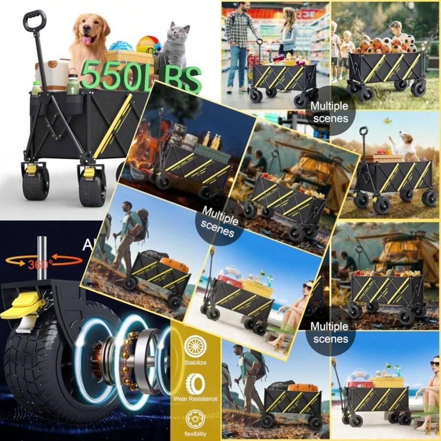 Wagon Cart Heavy Duty Foldable [2024 New Upgrade] Collapsible Wagon ...
