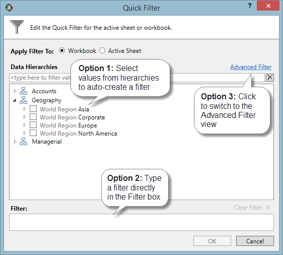 Quick Filters - Worked Example 1