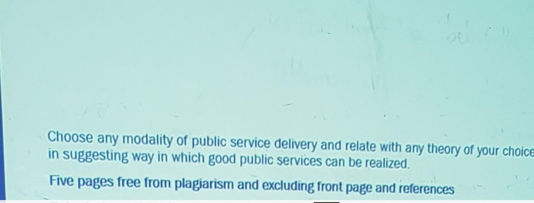 Choose any modality of public service delivery and | Chegg.com