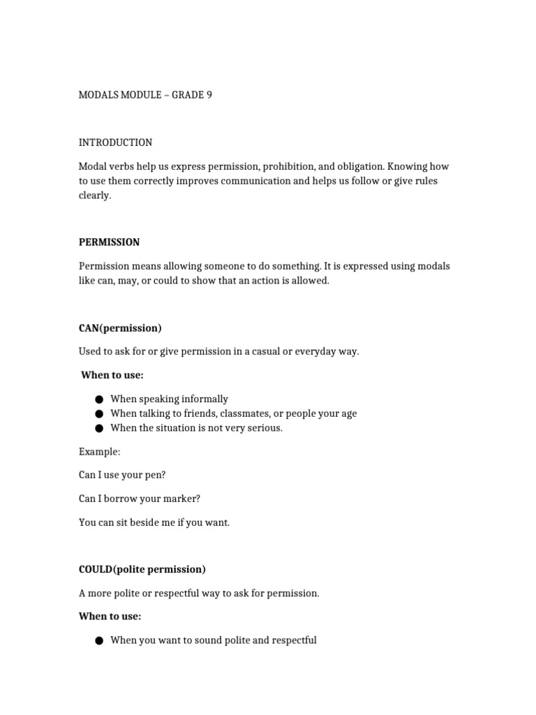 Grade 8 Modal Verbs Module | PDF