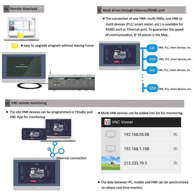HMI Remote Displays Modbus RTU/TCP Touchpanel LAN WiFi USB RS485 RS232