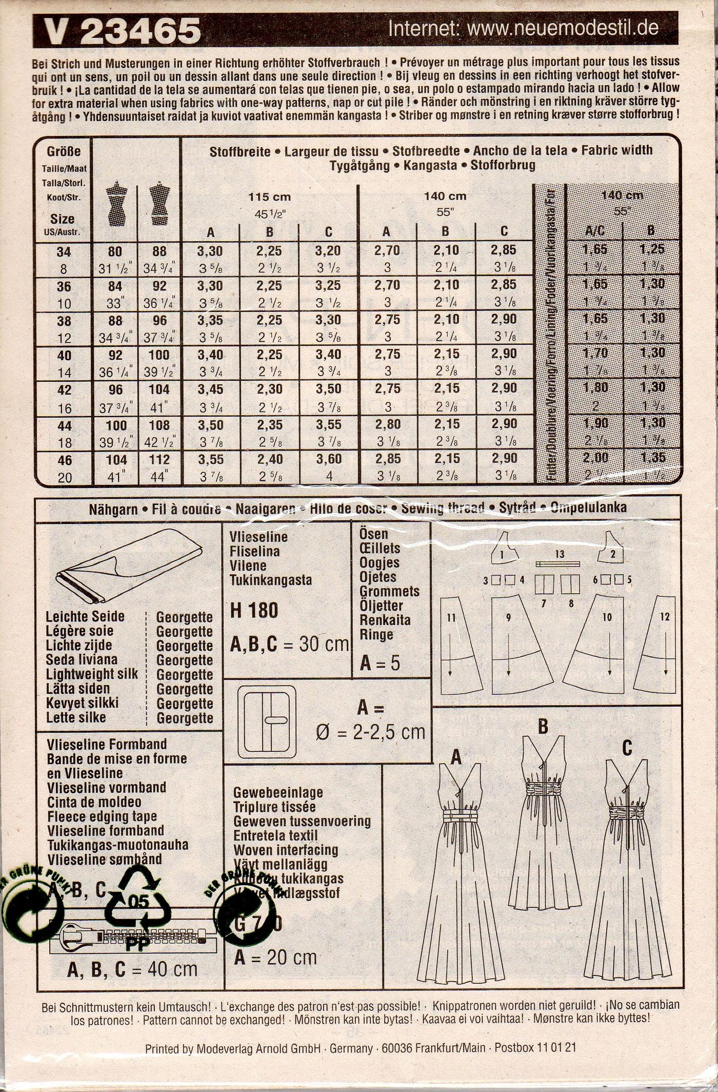 Sz 8 to 20 Neue Mode Pattern V23465 Misses' Sleeveless, V-neckline ...
