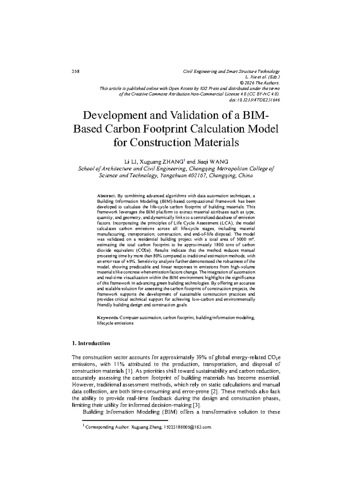 358 CE Smart Structures: BIM-Based Carbon Footprint Model Development ...