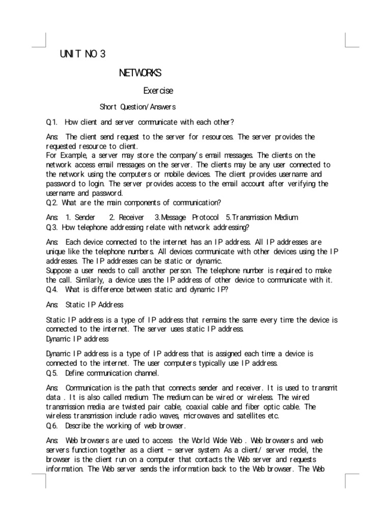 Computer Class 9 Unit No 3 Exercise Document | PDF | Computer Network ...