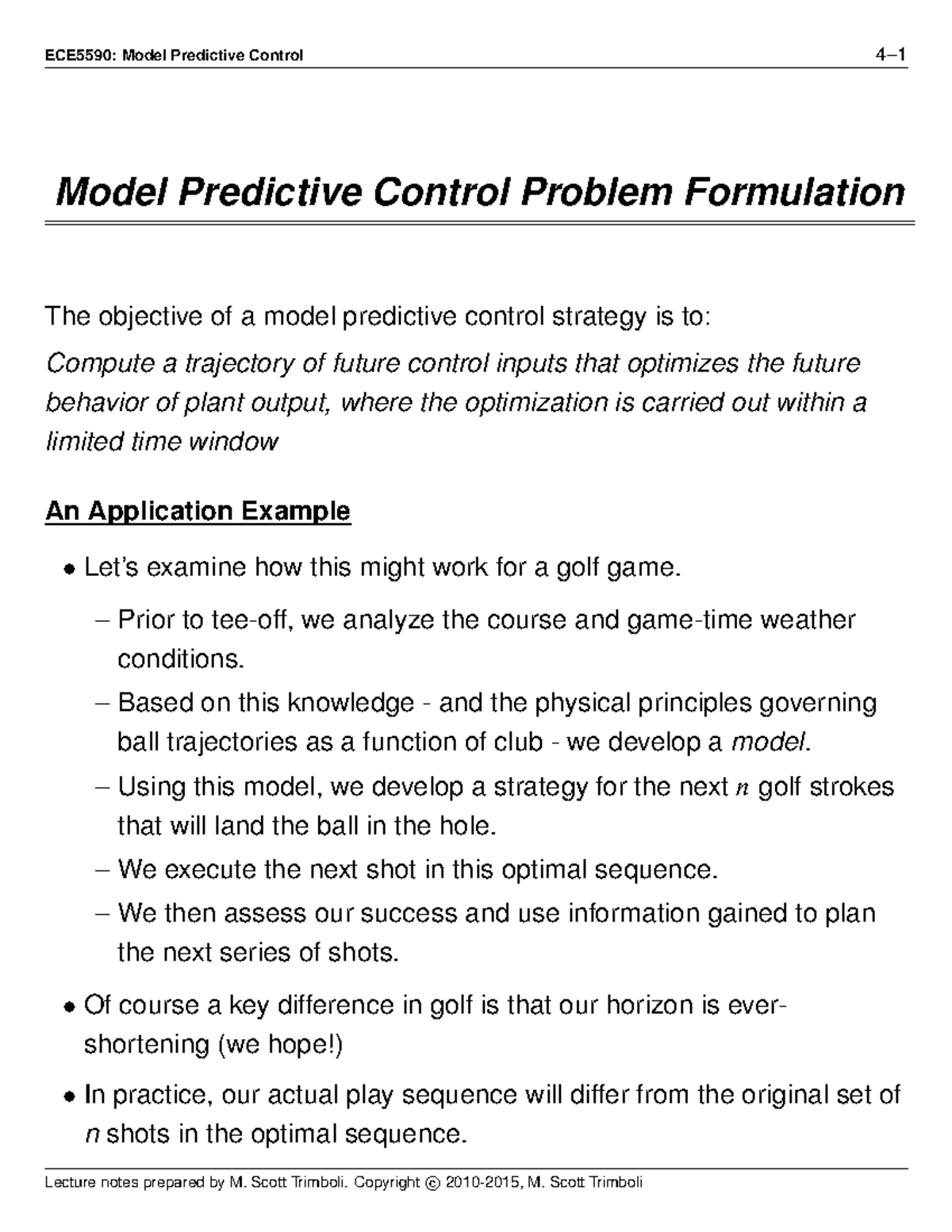 Model Predictive Control Problem Formulation - Prior to tee-off, we ...