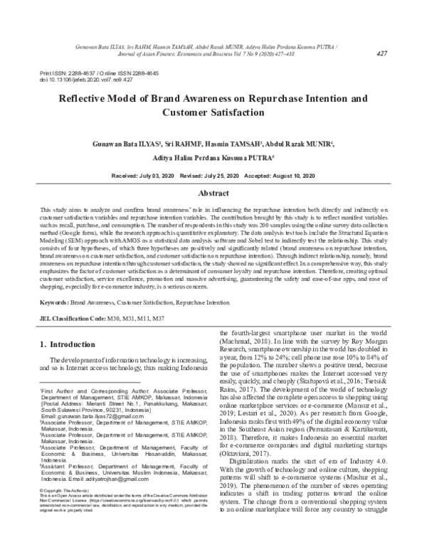(PDF) Reflective Model of Brand Awareness on Repurchase Intention and ...