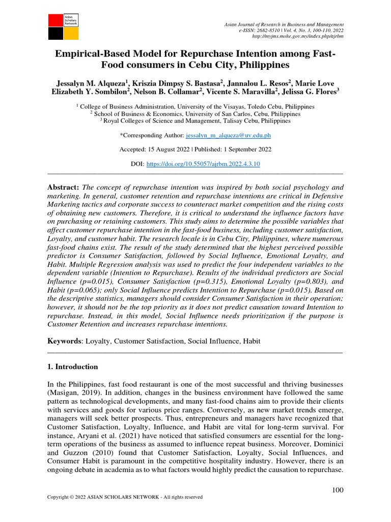 Empirical-Based Model For Repurchase Intention Among Fast-Food ...
