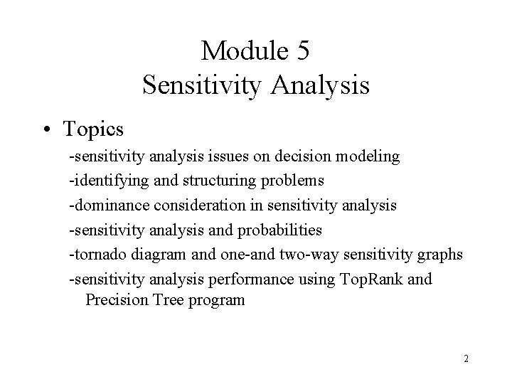 PPT - Module 5 Modeling Decisions Sensitivity Analysis PowerPoint ...