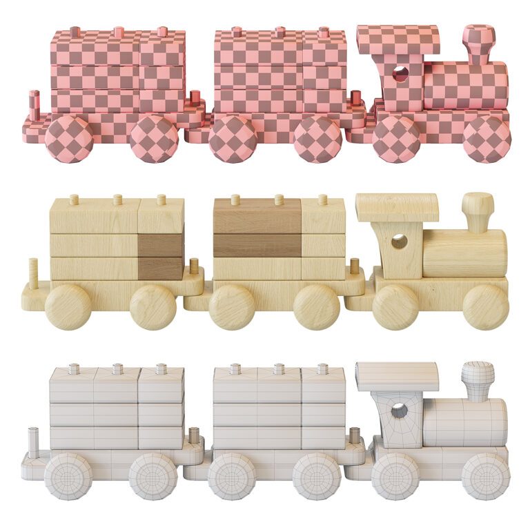 Wooden Train With Stacking Blocks (363642) 3D model - Download 3D model ...