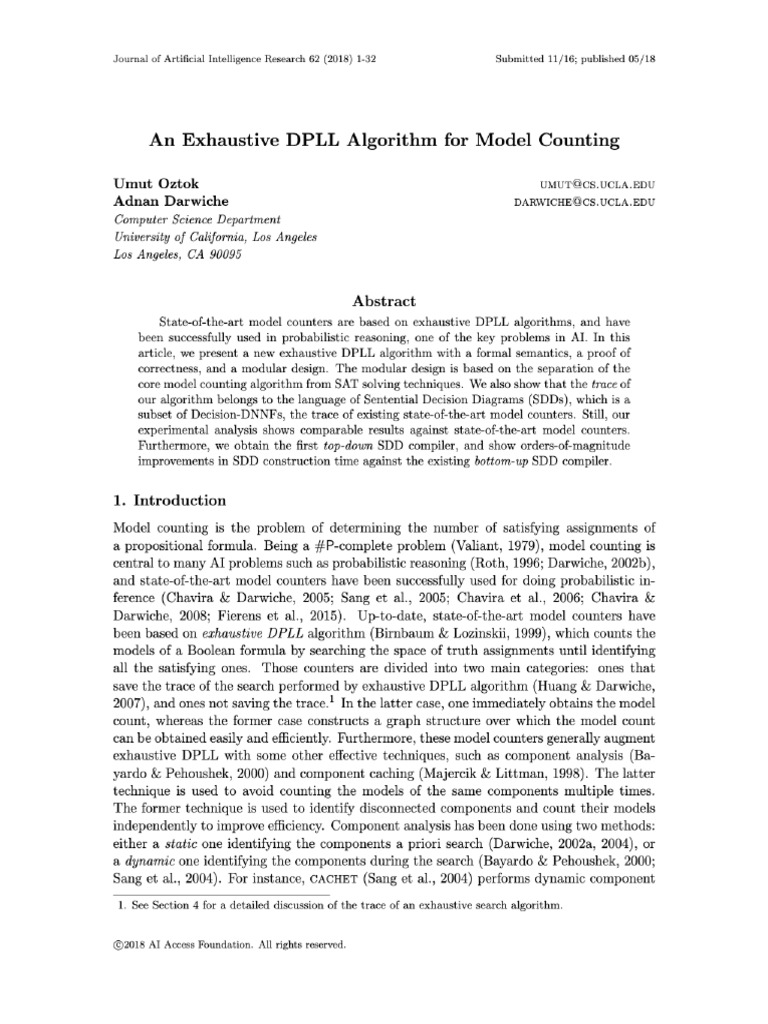 View of An Exhaustive DPLL Algorithm For Model Counting | PDF