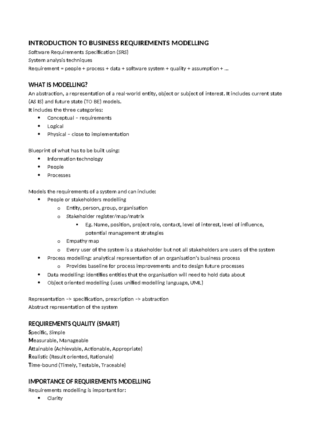 WK 1 (LEC) – Introduction to Business Requirements Modelling - Studocu