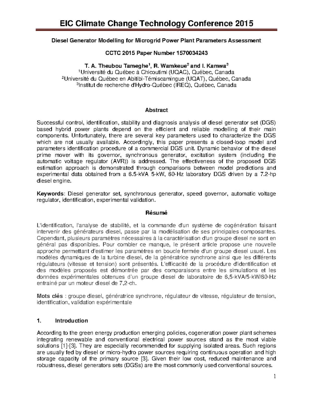 Diesel Generator Modelling for Microgrid Assessment - CCTC 2015 - Studocu