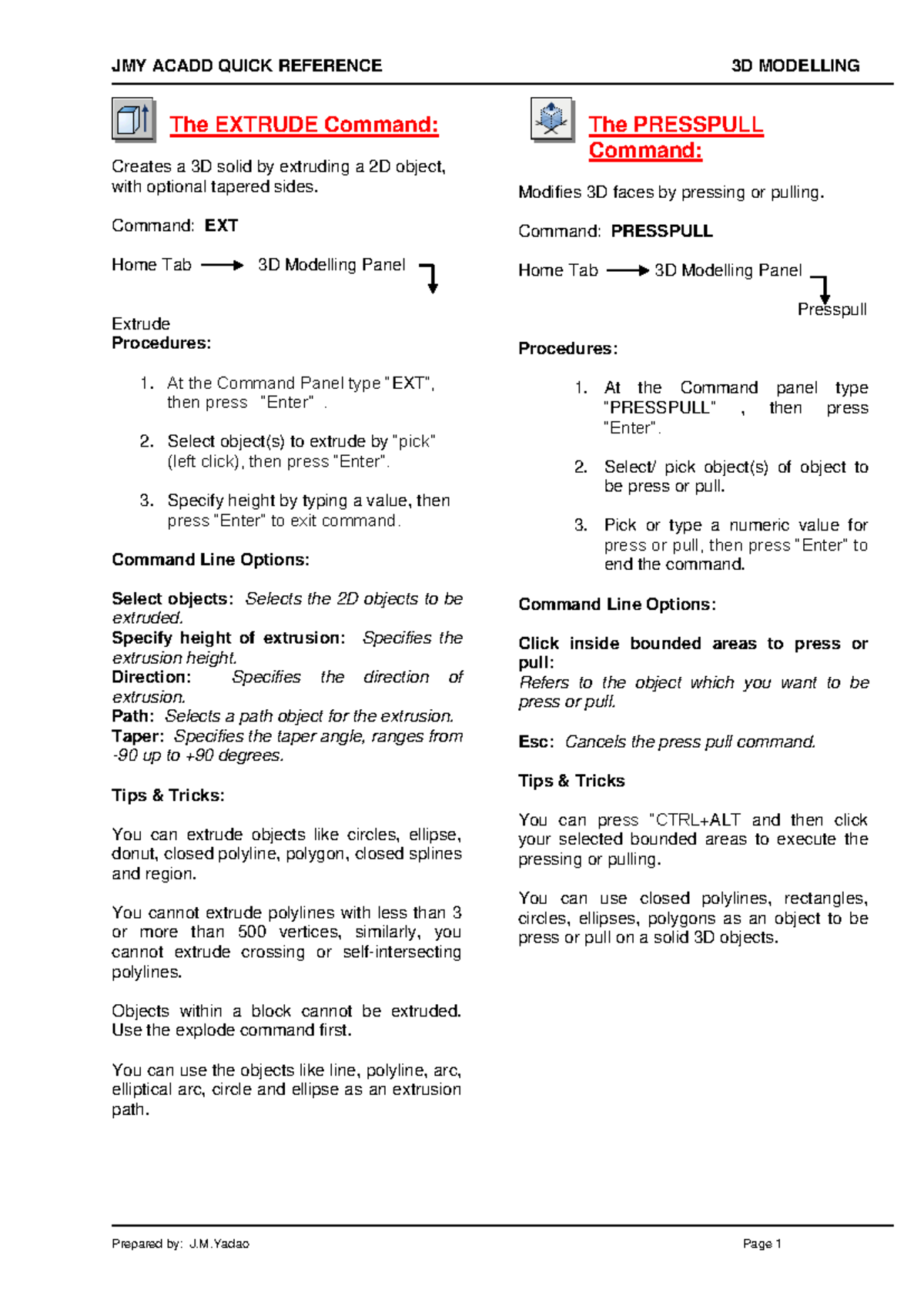JMY ACADD Quick Reference: 3D Modelling Commands for Finals - Studocu