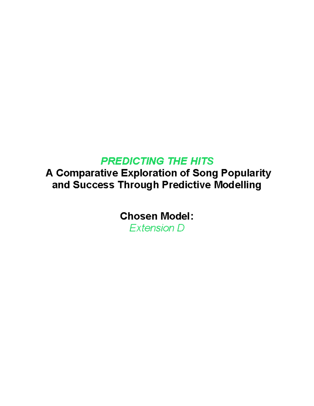 COMM1190 Assessment 2: Predictive Modelling for Song Popularity - Studocu