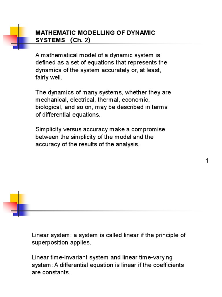 Chapter 3 mathematical modeling of dynamic system | PPTX