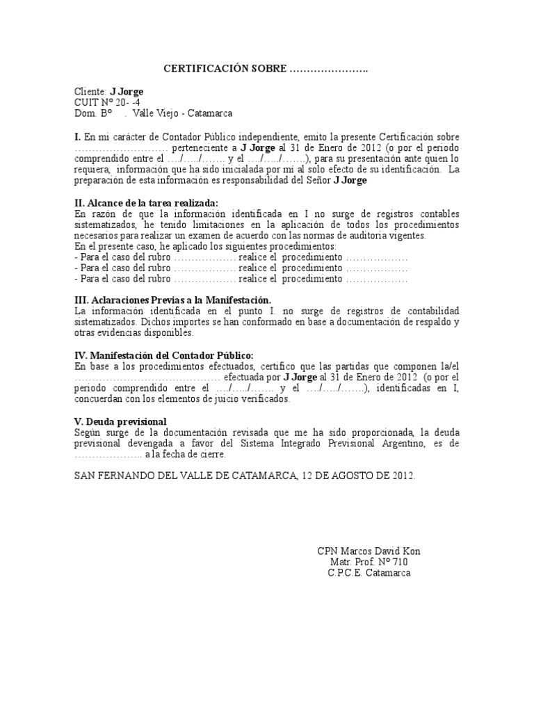 Modelo de Certificacion Generico | Contador | Contabilidad | Prueba ...