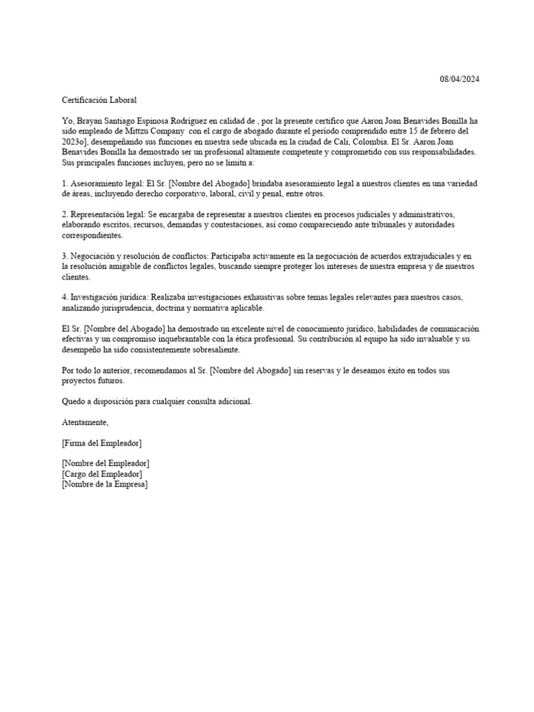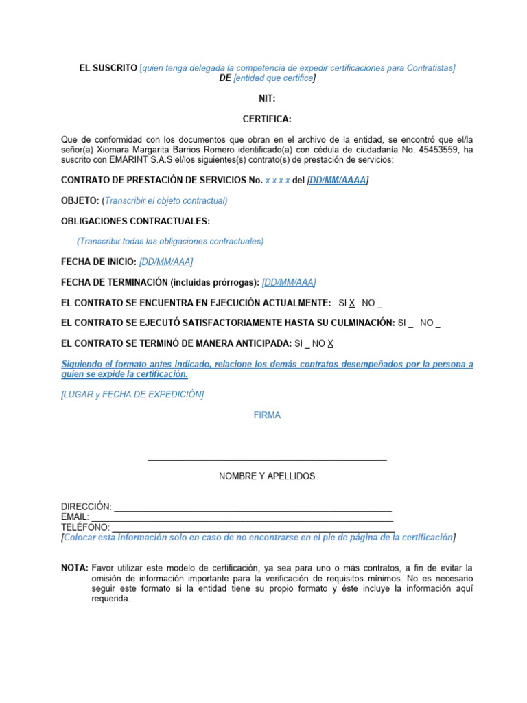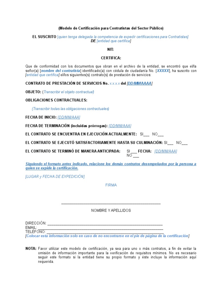 Modelo Certificado Contratistas | PDF