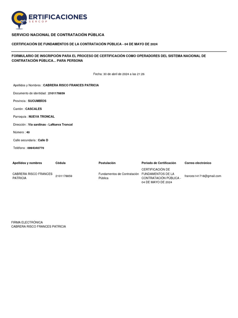 Certificado de Registro Nacional de Contratistas | PDF | Finanzas y dinero