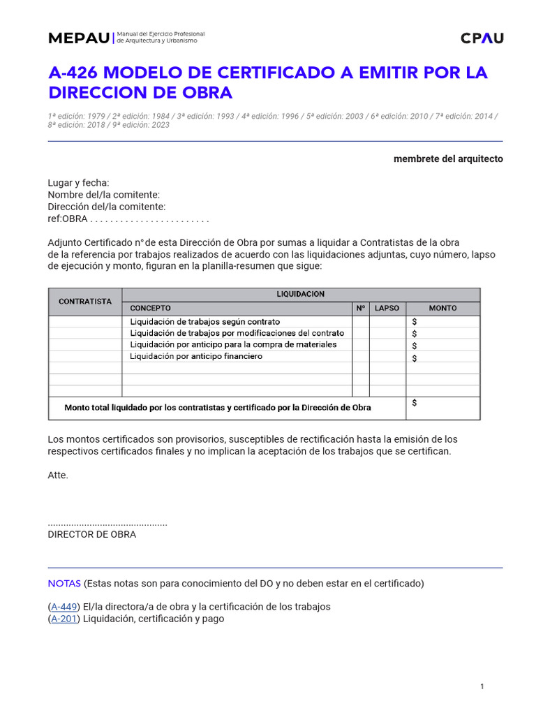 Modelo Certificacion Obras | PDF | Presupuesto | Economias