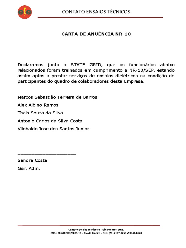 Carta de Anuencia NR-10 - 2022 | PDF
