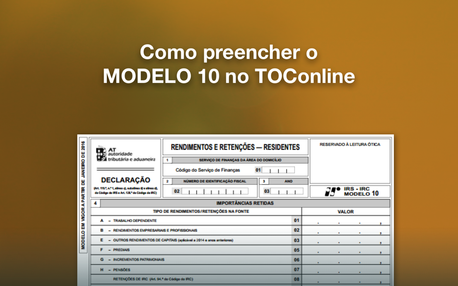 Como preencher o MODELO 10 no TOConline - TOConline