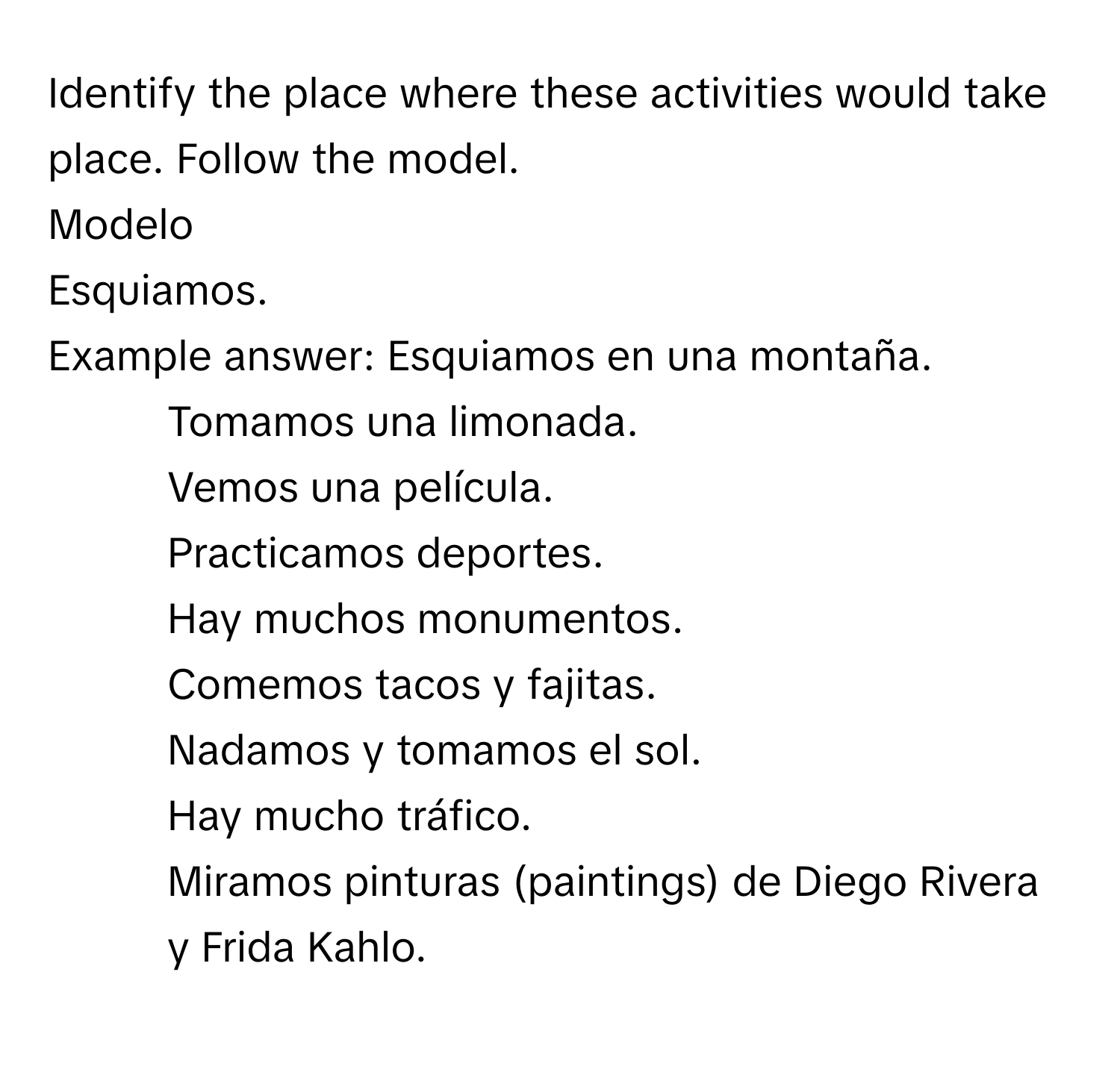 Solved: Identify the place where these activities would take place ...