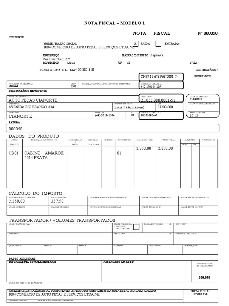 NOTA FISCAL Modelo 1 | Download grátis PDF | Recibo