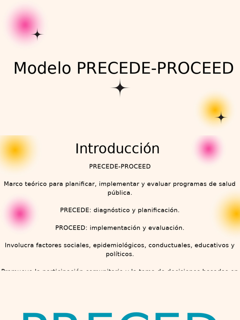 Flashcards de modelo PRECEDE para la salud | Por Alex med | uDocz