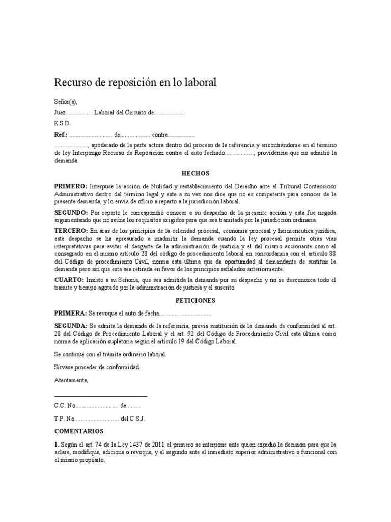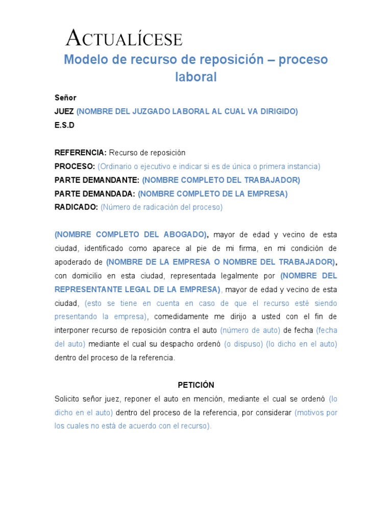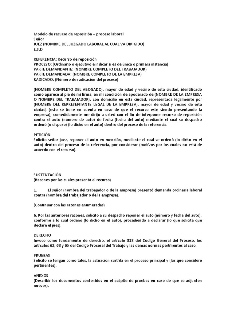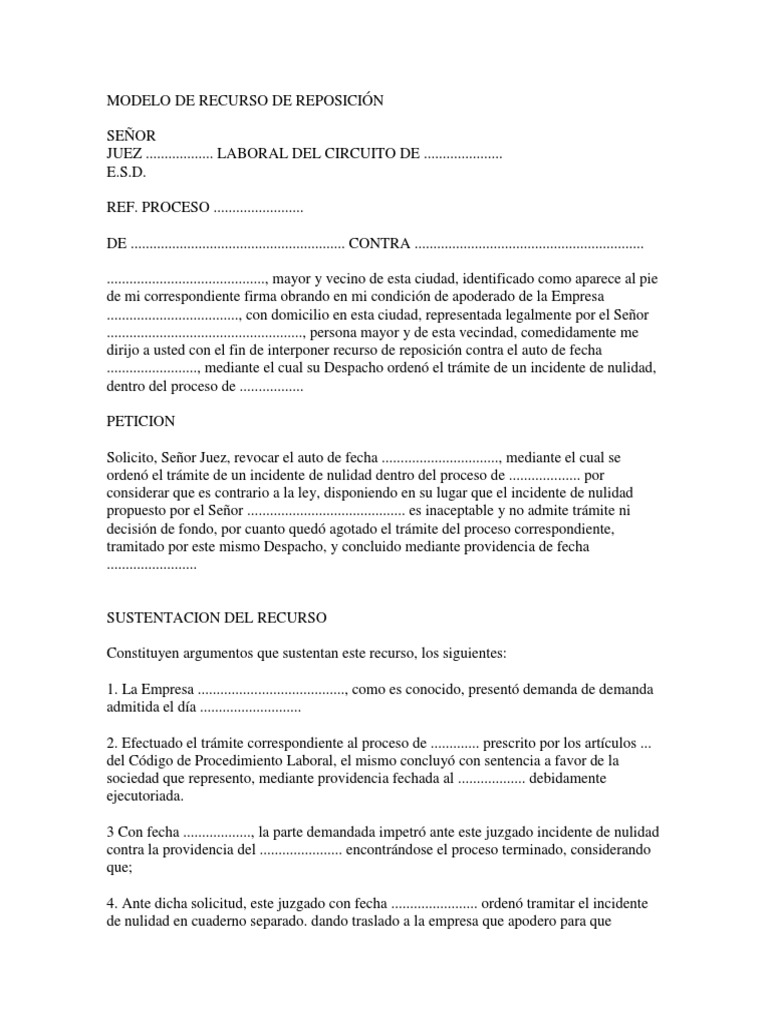 Escrito Modelo Recurso de Reposición Convenio Laborales | Derecho ...