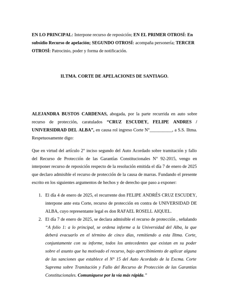 Modelo Ejemplo de un recurso de Reposición Corte - 1 EN LO PRINCIPAL ...