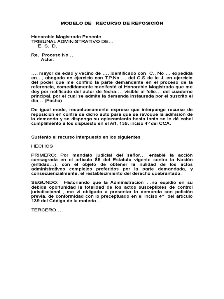 Modelo de Recurso de Reposicion | Descargar gratis PDF | Apelación ...
