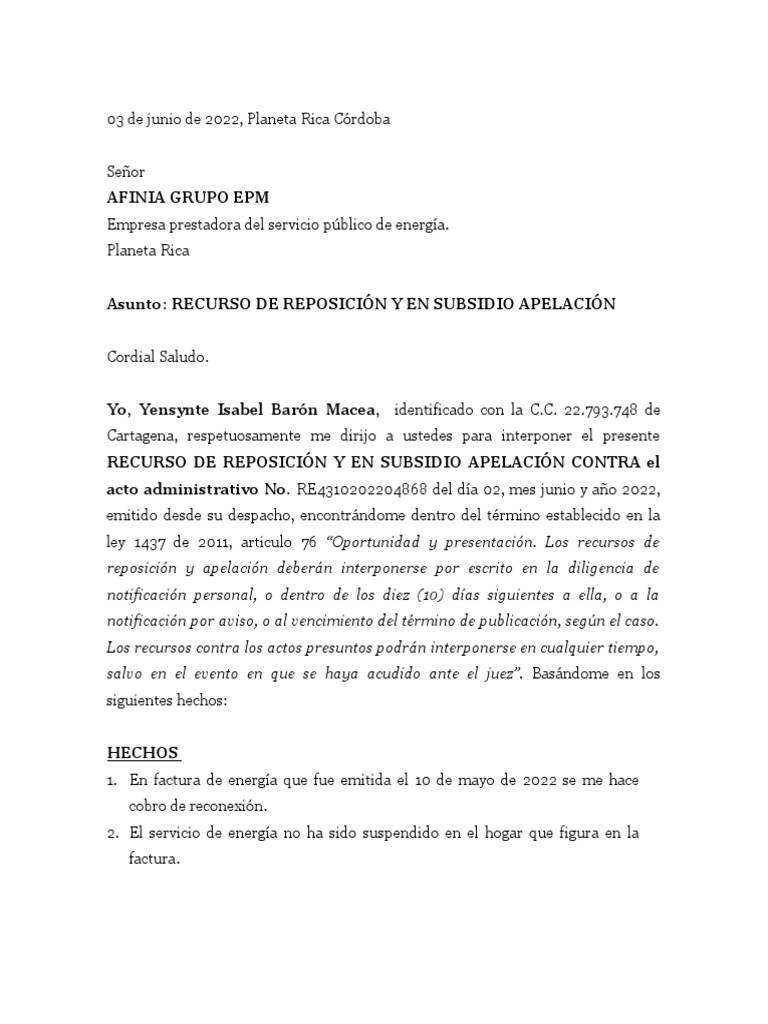 Recurso de Reposición Enel Colombia | PDF | Apelación | Justicia