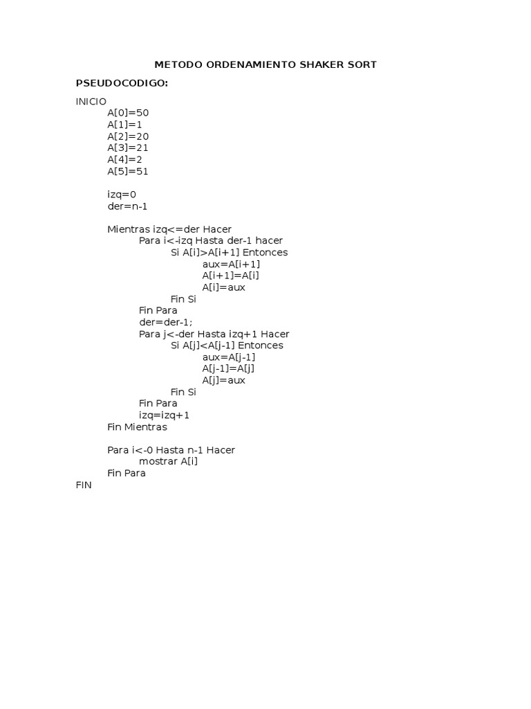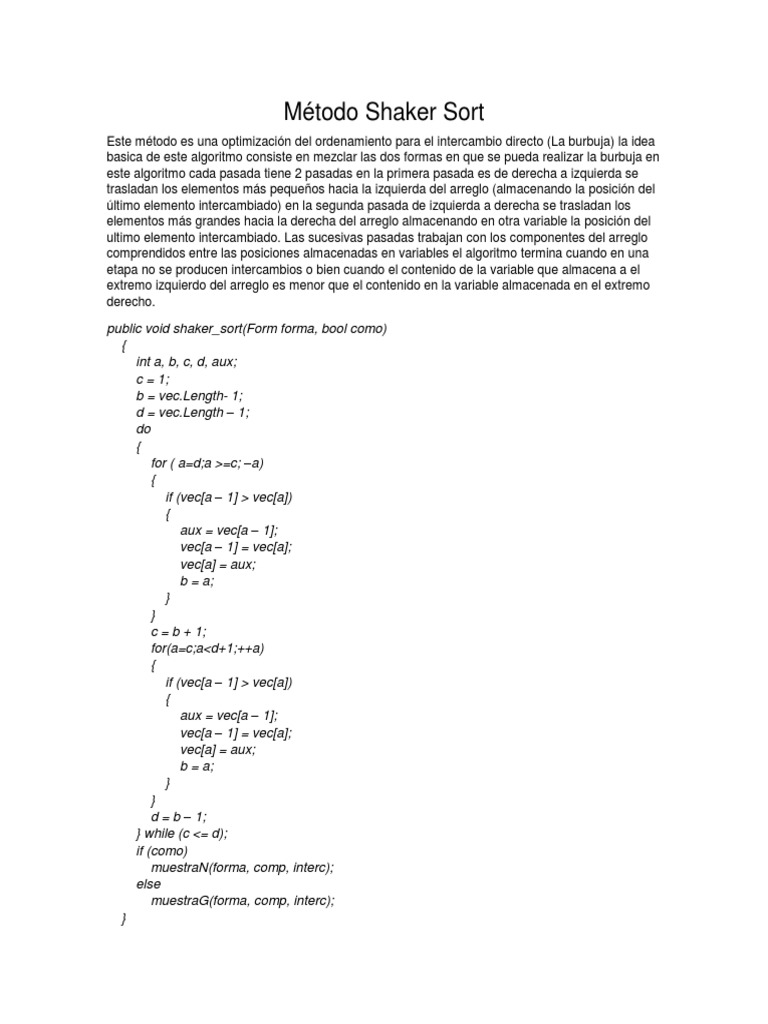 Método Shaker Sort | PDF | Conceptos matemáticos | Algoritmos y ...