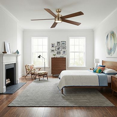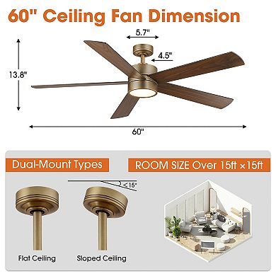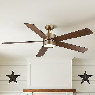 60" Modern Brass Plywood Dimmable LED Indoor Ceiling Fan with Light and ...