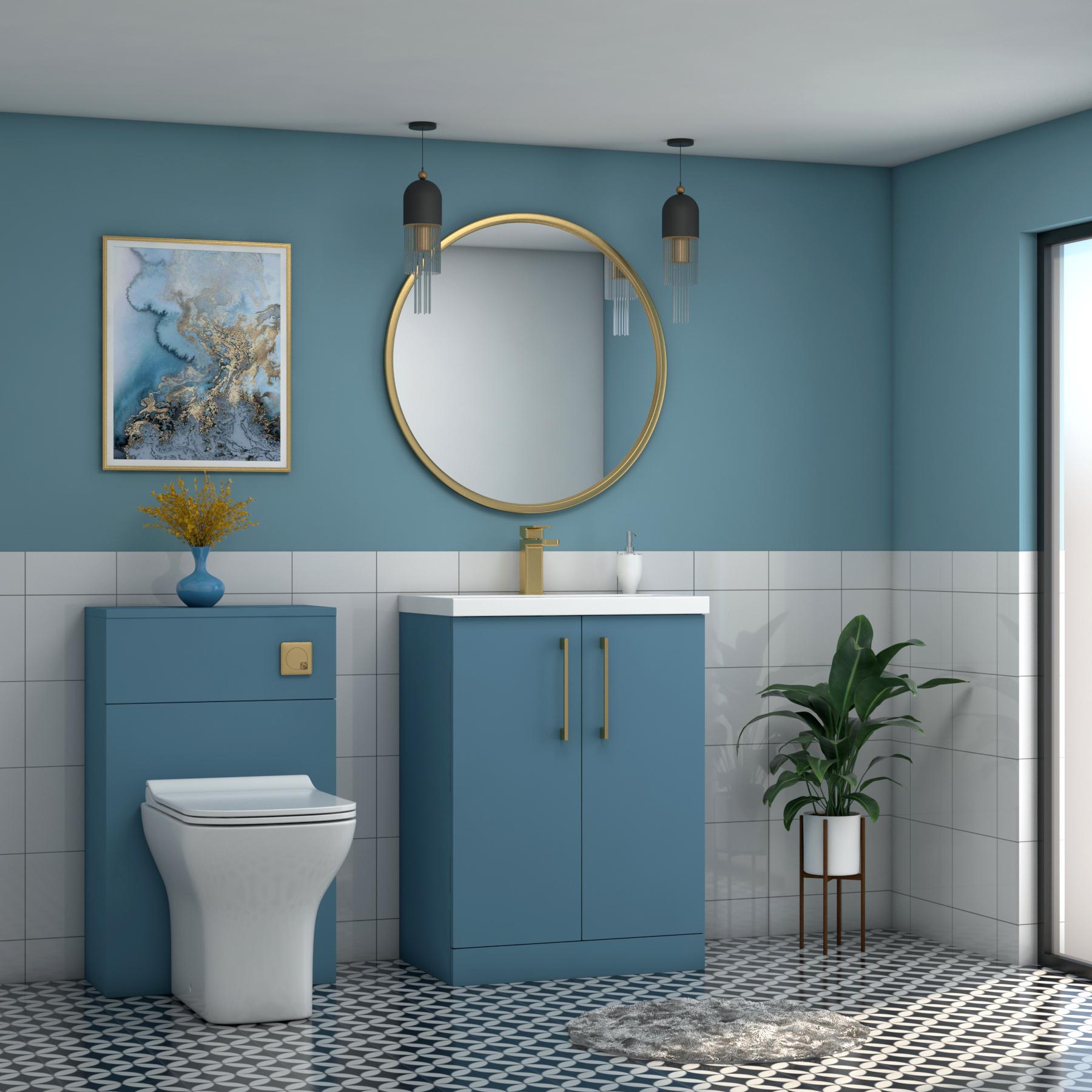 Modena Satin Blue 2 Door Floor Standing Vanity Unit with Mid-Edge Basin ...