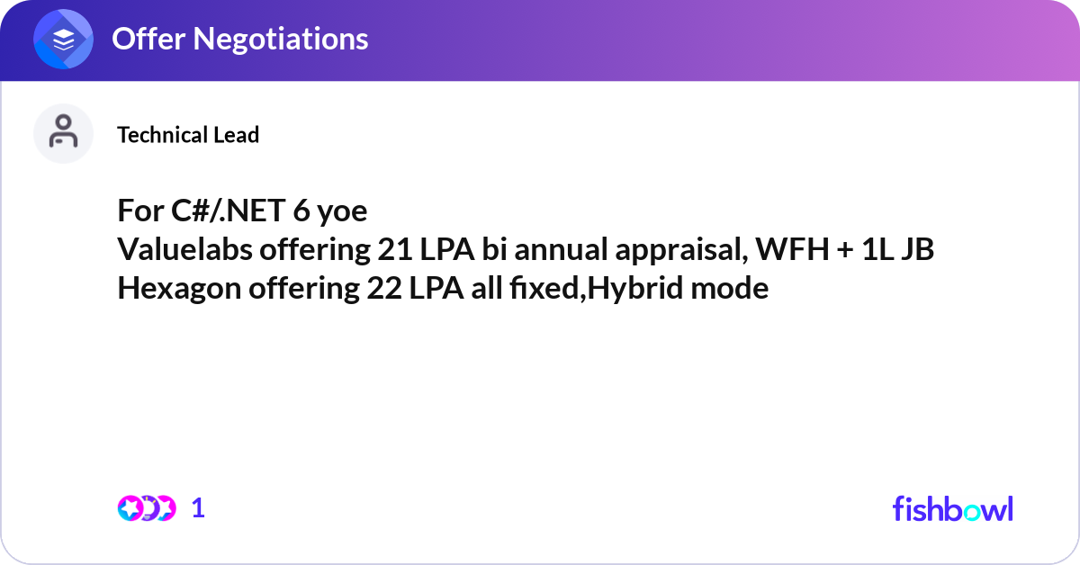 For C#/.NET 6 yoe Valuelabs offering 21 LPA bi an... | Fishbowl