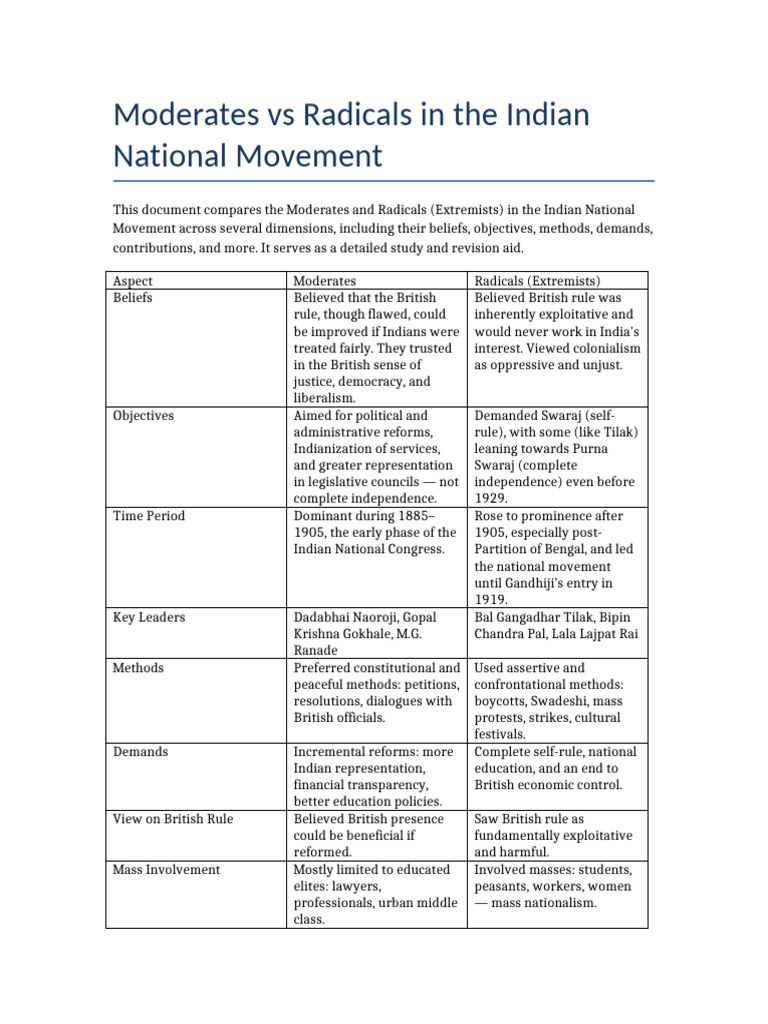 Moderates vs Radicals in India | PDF | British Raj | Political Science