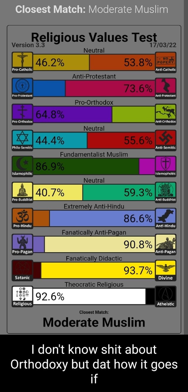 Closest Match: Moderate Muslim Religious Values Test Version 3.3 ...