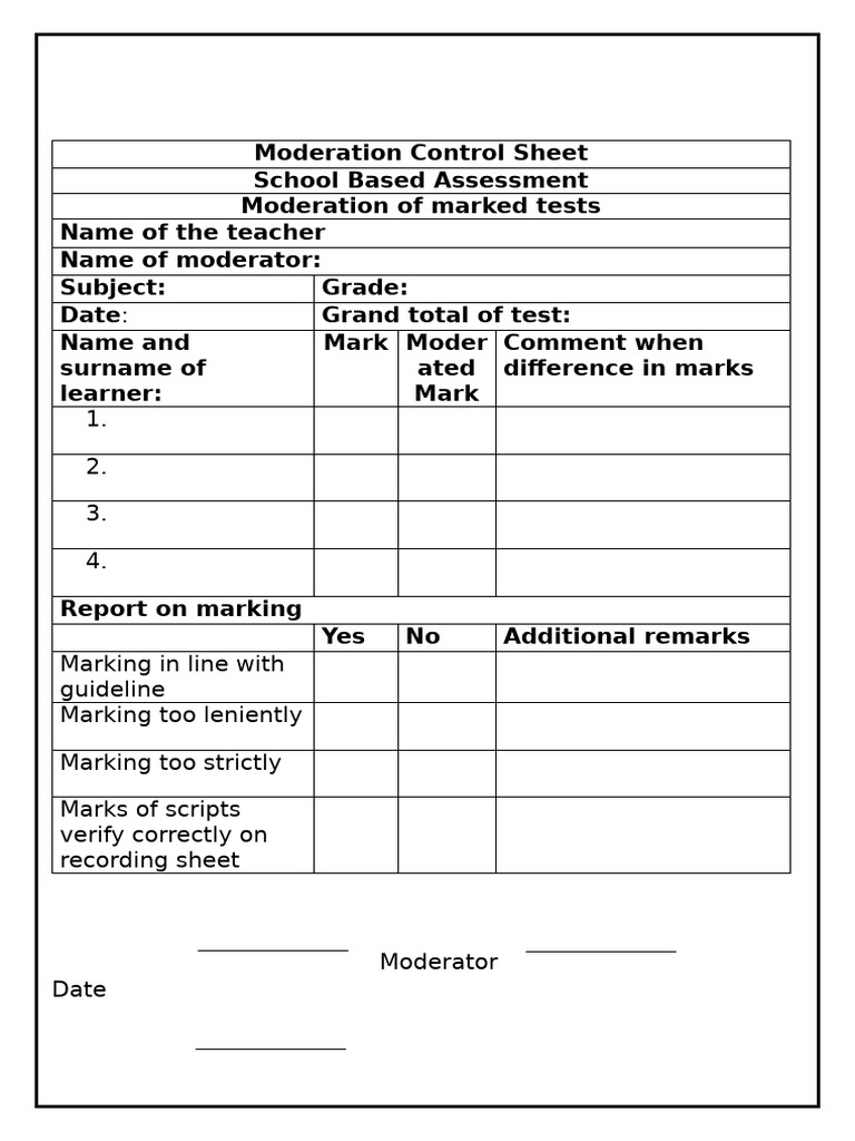 Moderation Control Sheet After Assessment | PDF