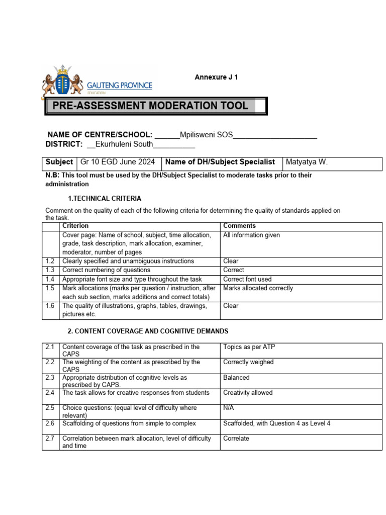 Gr 10 EGD Pre-Assessment Moderation Tool | PDF | Bias | Human Communication