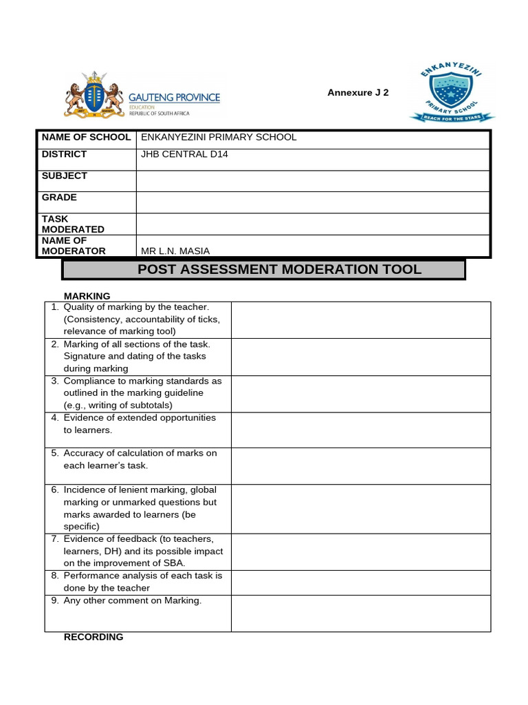 GDE GEC IP Post Assessment Moderation Tool Annexure J2 - Studocu