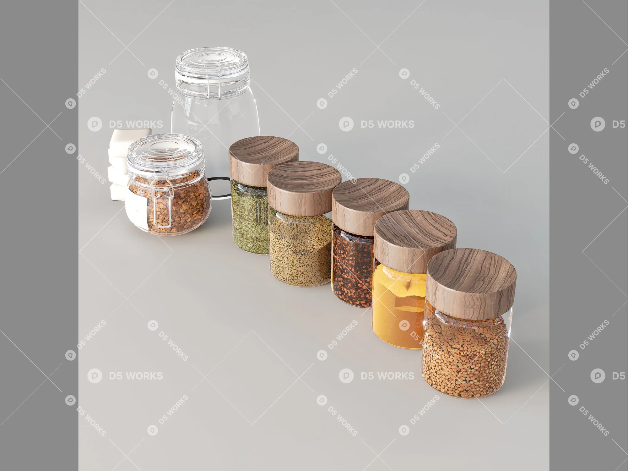 Condiment Set on Wooden Table Modern Photography Isolated on White ...