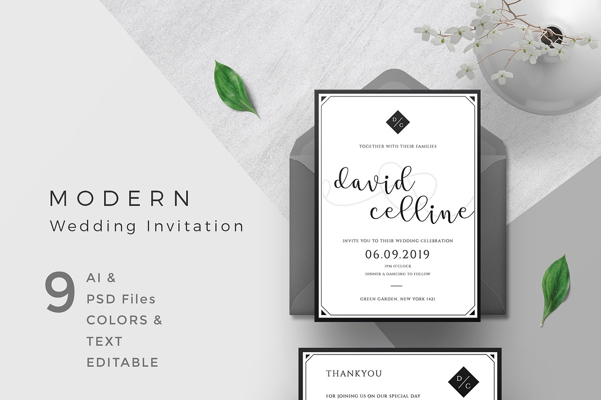 Best 11 Minimalist Wedding Invitation Template Set, Modern Wedding ...