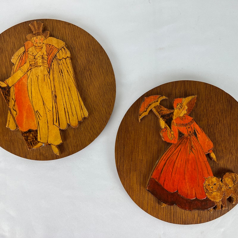 Vintage Pyrography Wall Hanging: Mid Century Modern "red Dance" - Etsy