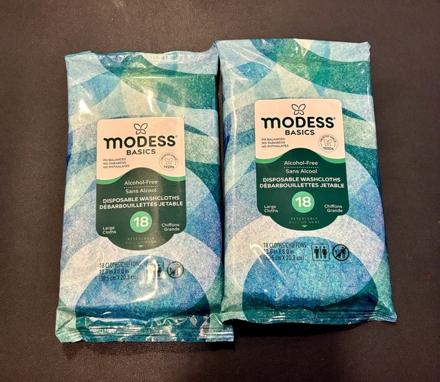 MODESS BASICS ALCOHOL Free Large Disposable Body Wipes Washcloths 2 ...