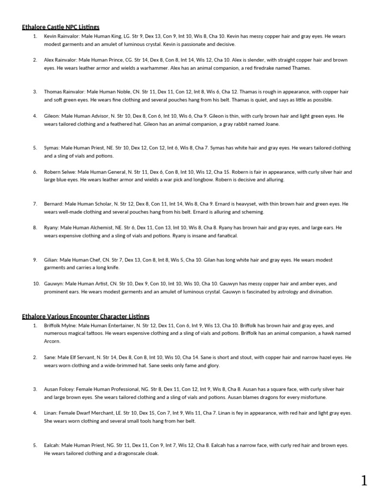 Ethalore NPCs: Modest Characters | PDF | Clothing