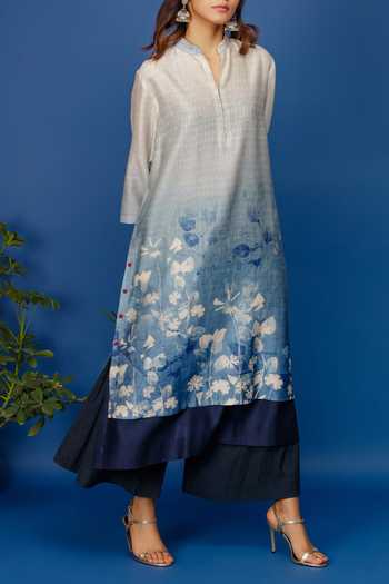 Buy Anju Modi Blue Chanderi Printed Kurta And Palazzo Set Online | Aza ...