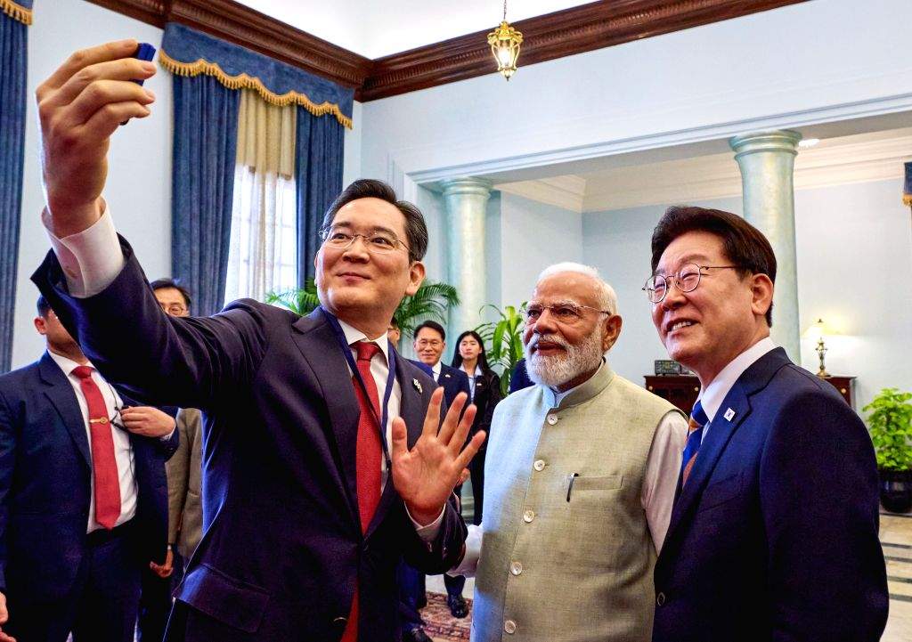 Samsung chairman takes selfie with PM Modi, S Korean president on 'Made ...