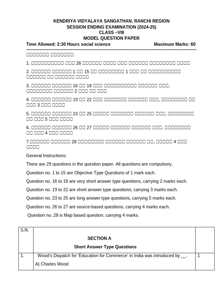 SSC MODIFIED-class - VIII - Model - Questio - Paper - SEE - 2024-25 | PDF