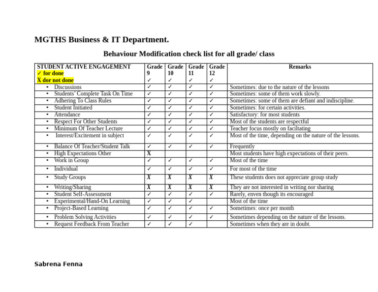 Behaviour Modification Checklist | PDF